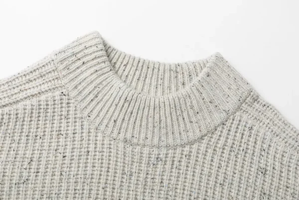 Pullover knitted sweater with wide sleeves and mid raise neckline. Short in style and goes best with higher waist bottom…