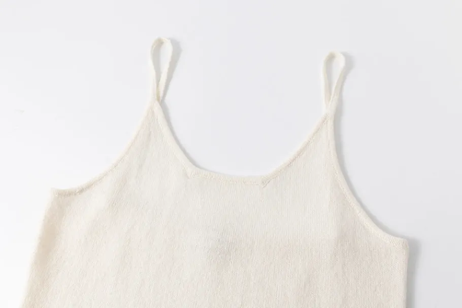 This basic tank top is crafted from 100% wool, providing warmth and comfort. It features a fine ribbed trim at the bottom and delicate straps. The neckline is slightly V-shaped, adding a touch of elegance to its simple design. Perfect for layering or wearing on its own, this versatile piece can be paired with matching wool shorts for a cohesive look. Size recommendation in CM (Not product measurement)XS: Chest 78-82. Waist 63-67. Bottom 88-91S: Chest 83-87. Waist 68-72. Bottom 92-95M: Chest 88-91. Waist 73-77. Bottom 96-99L: Chest 92-96. Waist 78-81. Bottom 100-104Product measurement in CMXS: Length27. Bust74. Waist69S: Length28. Bust78. Waist73M: Length29. Bust82. Waist77L: Length30. Bust86. Waist81