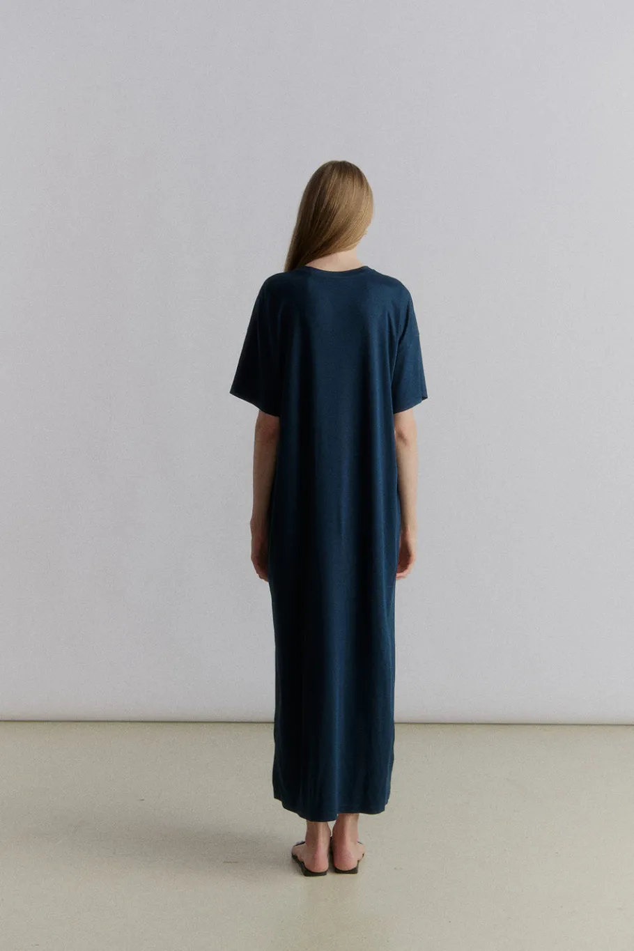 Oversized jersey dress with matching scarf and heart pin. Use the scarf for the shoulders or wrap it around the hips. Slit on the side. Pockets on the sides. Longer in style and great summer dress for the warmer days. Model is 176cm tall and wears size S.50% cotton, 50% modalSize recommendation in CM (Not product measurement)XS: Chest 78-82. Waist 63-67. Bottom 88-91S: Chest 83-87. Waist 68-72. Bottom 92-95M: Chest 88-91. Waist 73-77. Bottom 96-99L: Chest 92-96. Waist 78-81. Bottom 100-104Product measurement in CMXS: Chest 112. Length 128S:Chest 116. Length 130M: Chest 122. Length 132L: Chest 126. Length 134