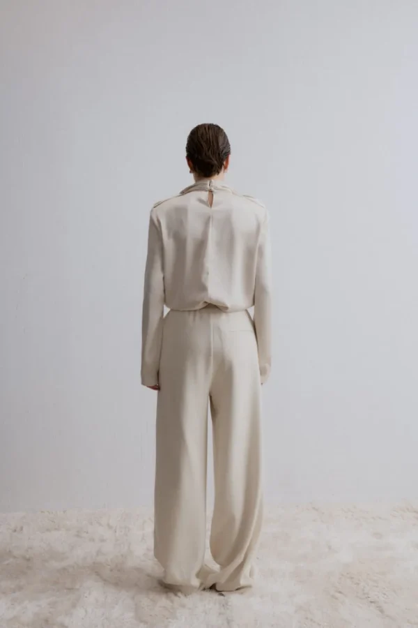 With a satin-like finish, this blouse provides a smooth, silky feel that drapes beautifully and adds a subtle sheen to your look. The standout feature is the intricate twisted knot design around the neck and shoulder area, creating a sophisticated and unique focal point that sets this blouse apart. Two elegant buttons add a refined touch at the back. Size recommendation in CM (Not product measurement)XS: Chest 78-82. Waist 63-67. Bottom 88-91S: Chest 83-87. Waist 68-72. Bottom 92-95M: Chest 88-91. Waist 73-77. Bottom 96-99L: Chest 92-96. Waist 78-81. Bottom 100-104Product measurement in CMXXS: Front length62. Bust96. Shoulder42. Sleeve length59XS: Front length63.5. Bust100. Shoulder43. Sleeve length60S: Front length65. Bust104. Shoulder44. Sleeve length61M: Front length66.5. Bust108. Shoulder45. Sleeve length62L: Front length68. Bust112. Shoulder46. Sleeve length63